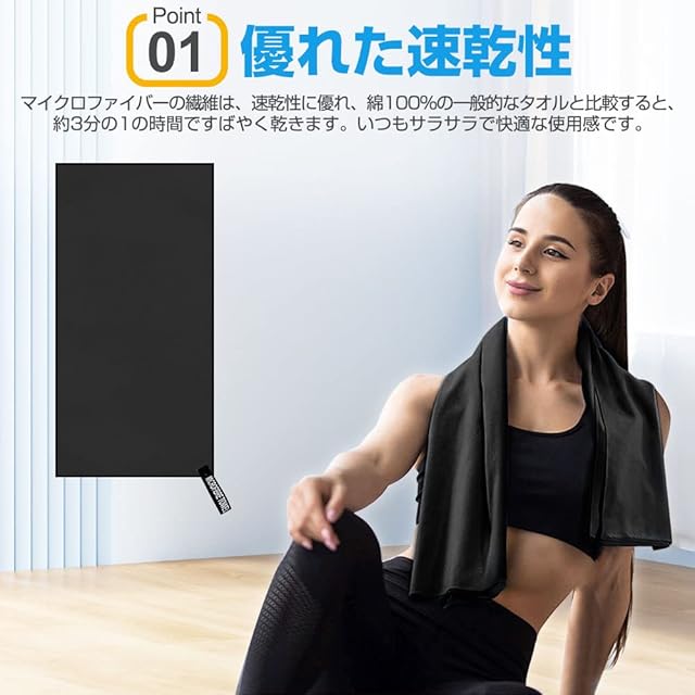 【超吸水・速乾・抗菌】見た目が薄くても吸水性に優れ、タオル専用のふわふわなマイクロファイバー繊維を使った吸水速乾タオル。極細繊維で肌触りもシルキーです。抜群の吸収力のうえ、軽くて肌触りも良く、耐久性も優れています。カビを防ぎ抗菌処理を施しました、汗を吸っても安心、濡らしたタオルに雑菌が繁殖するのも防いでくれます。