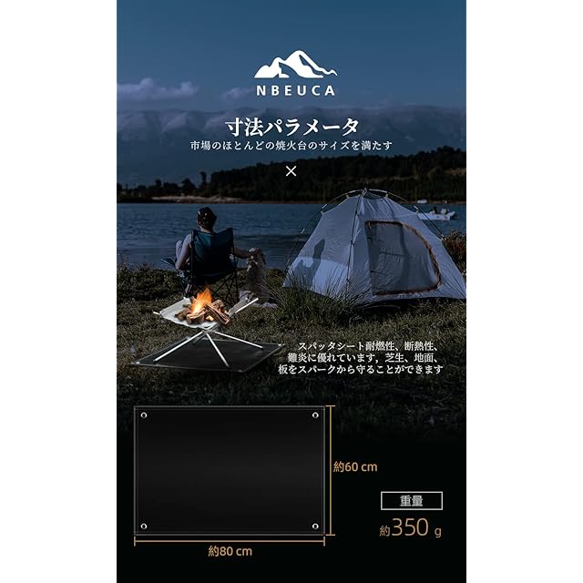 商品名:焚き火シート スパッタシート 焚き火台シート 耐熱 防炎 耐火シート ガラス繊維 キャンプ 芝生保護 薪ストーブ バーベキューコンロ 焚き火用… (【第3世代ブラック】60×80)
