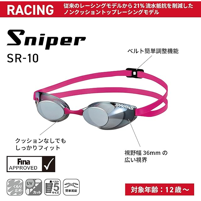 商品名:SWANS (スワンズ) 日本製 スイミングゴーグル Sniper スナイパー SR-10N PUR パープル レーシング くもり止め ノンクッション Fina承認モデル