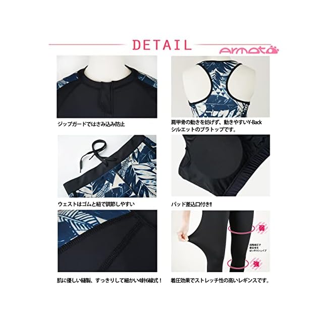 [特徴] 水陸両用 吸汗速乾 接触冷感 UPF50+ 軽量 体型カバー 4WAYストレッチ。