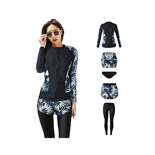 商品名:フィットネス 水着 レディース 体型カバー ラッシュガード 5点セット ビキニ ショートパンツ レギンス ショーツ [接触冷感・UPF50+・吸汗速乾]