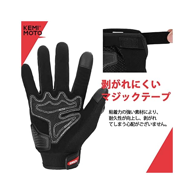商品名:KEMIMOTO バイク グローブ 夏 メッシュ 通気 バイク用グローブ 軽量 スマホ対応 夏用グローブ オートバイ手袋 滑り止め 耐衝撃 プロテクト 春夏秋 ブラック XL 402