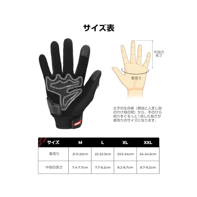 【スマホ反応はバッチリ】人差し指、親指の指先にタッチパネル対応の特殊な素材を採用され、グローブを着用したままスマホやタブレットなどの操作ができます。ツーリングの時、グローブをして、ナビや撮影に高い利便性があり、わざわざ脱着する必要はございません。