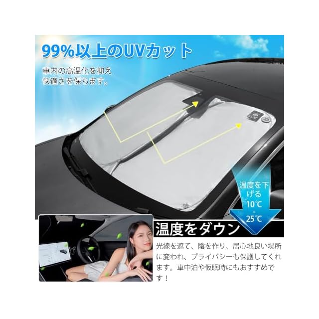 2.【遮光断熱・UVカット】:2層断熱コーティングを採用し、99.5%の紫外線をカット!また、日焼けや熱線により、内装の劣化を防止します。さらに、車内温度が抑えられており、エアコン率が良くなり、車内泊を快適にします。