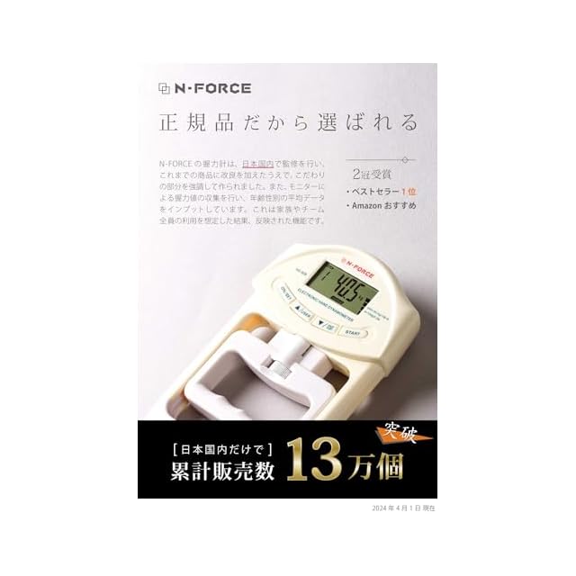商品名:【 記録更新がひと目でわかる 】 N-FORCE(エヌフォース) 正規品 デジタル握力計 握力測定 書付 アイボリー