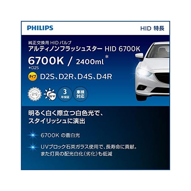 商品名:フィリップス 自動車用バルブ&ライト HID ヘッドライト バルブ D2R 6700K 2100lm 85V 35W アルティノンフラッシュスター Ultinon Flash Star 純正交換用 車検対応 3年 85126FSJ HIDバルブ