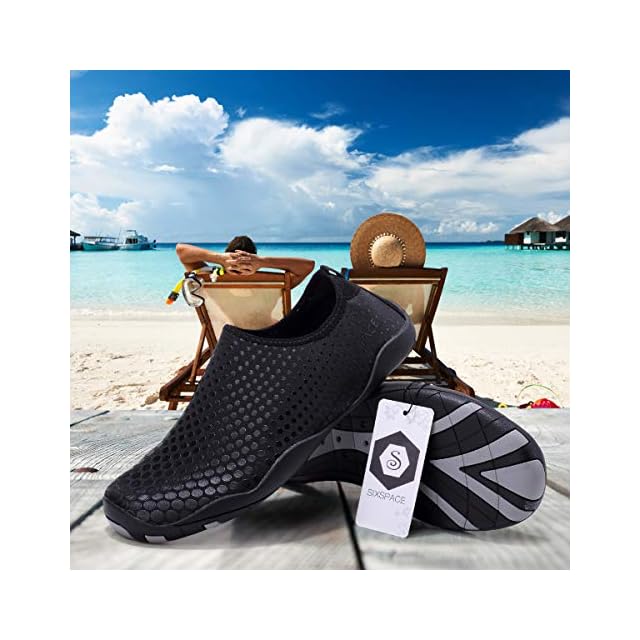 Sixspace マリンシューズ ウォーターシューズ 水陸両用 アクアシューズ シュノーケリング ビーチシューズ 軽量 通気 ヨガ サーフィン 男女兼用 ブラック 24CM