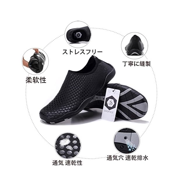 商品名:Sixspace マリンシューズ ウォーターシューズ 水陸両用 アクアシューズ シュノーケリング ビーチシューズ 軽量 通気 ヨガ サーフィン 男女兼用 ブラック 24CM
