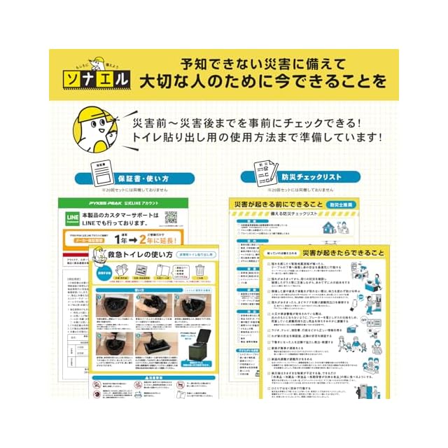 商品名:【防災士推奨】PYKES PEAK 簡易トイレ 災害用 凝固剤 120回分 15年保存 携帯トイレ 防災グッズ 防災 防災トイレ 災害用 非常用 防災チェックリスト付き モグラ隊長