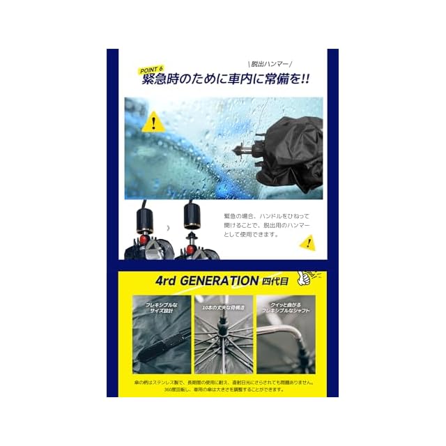 【傘骨露出防止設計・丈夫な10骨設計】各傘骨の先端に露出防止設計を施すことで、車の内装に傷をつける心配がない。 傘の骨には、強度、耐熱性、耐食性のバランスに優れたガラス繊維を採用し、耐久性に優れています。長期間の使用が可能。