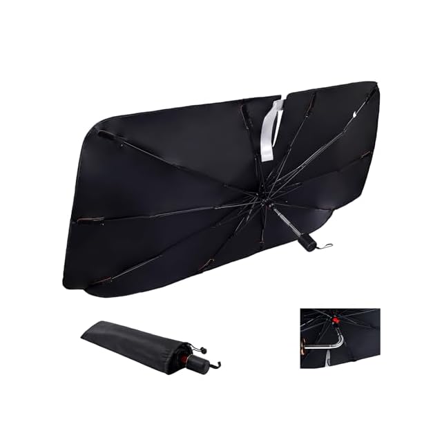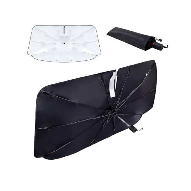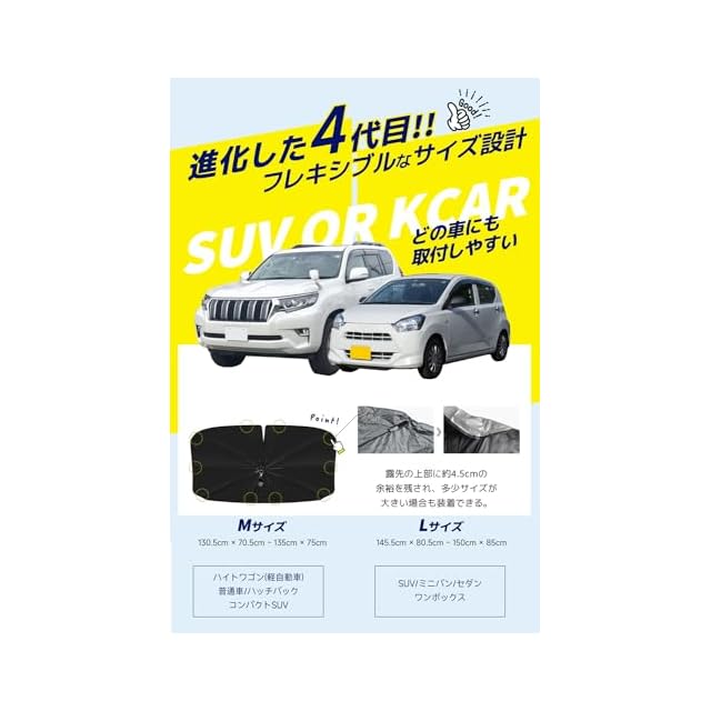 商品名:konciwa【2024新版&曲がる中棒】 サンシェード 車 フロント 傘型 車用サンシェード 折り畳み式 強力な10本骨逆折り式 車用パラソル 自動車用サンシェード バックミラー開き口 遮光 遮熱 取り付け簡単 収納便利 レザーバック付き フロントガラス 紫外線対策 遮光性よい 車中泊 仮眠 暑さ対策… (M-S(135*75cm幅の調整可能))