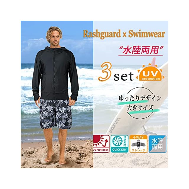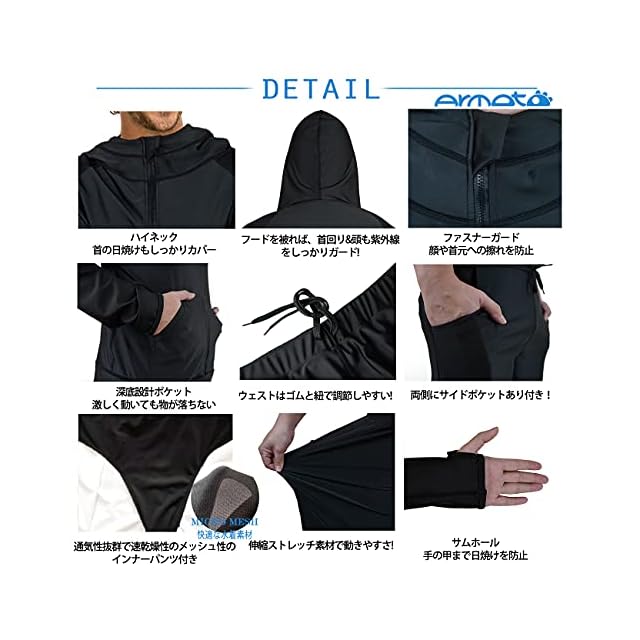 商品名:【ARMOTO】 ラッシュガード メンズ 水着 長袖 パーカー レギンス サーフパンツ フィットネス [UVカット UPF50+・吸汗速乾] 水泳 水陸両用 大きいサイズ