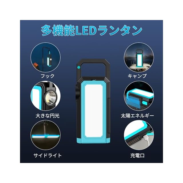 【さまざまな場面で使える ランタン 】アーム付きで持ち運びに大変便利です。非常灯、作業灯、スタンドランプ、キャンピングランタン、懐中電灯として使えます。ソーラー充電で電池不要のため、アウトドアはもちろん万一の災害時にもお使いいただけます。【1年間安心】弊社はランタンの初期不良、自然故障、通常使用における不具合には1年間のが対応しています。本製品の使用過程に、何か不明なところがあれば、いつでも連絡してください。