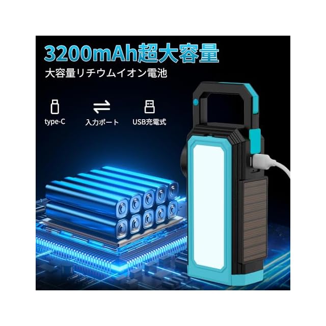 【3200mAh大容量】このランタン ソーラーは3200mAh大大容量バッテリーを内蔵しています。本体側の入力ポートからランプへの充電が可能です。充電ケーブルが完全に挿入されたことをよく確認してください。5V1.0A出力のUSBポートでスマートフォン、タブレット、GPSなどの充電が可能です。非常用電源としても使用可能です。【ご注意:ランタン 充電式 の出力電力は5V1Aですので、1A以上の出力電流が必要の充電デバイスであれば充電不可の可能性があります。また、i-Ph oneのスマホはシステムの原因で充電不可です。(ランタン充電機能を使用するには、充電器がランタンの電圧と電流に一致している必要があります)】