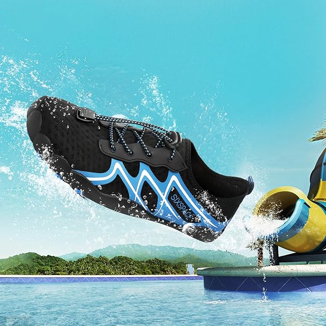 [SIXSPACE] マリンシューズ ウォーターシューズ アクアシューズ ビーチシューズ スニーカー ヨガ シュノーケリング 水陸両用 軽量 通気 ブルー 25cm | Trend Design BASE店