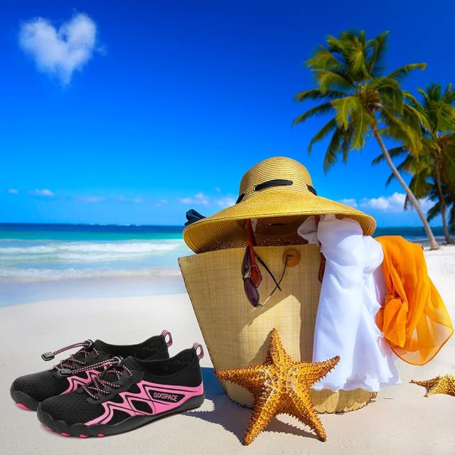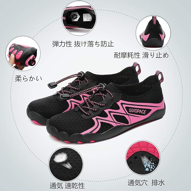 [SIXSPACE] マリンシューズ ウォーターシューズ アクアシューズ ビーチシューズ スニーカー ヨガ シュノーケリング 水陸両用 軽量 通気 ローズ 25cm | Trend Design BASE店