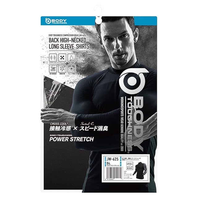 商品名:おたふく手袋 夏用インナー 長袖ハイネック[接触冷感 吸汗速乾 スピード消臭 UVカット コンプレッション メンズ]JW-625 カモフラxブラック LLサイズ