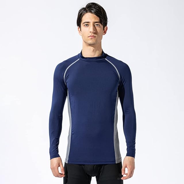 おたふく手袋(Otafuku Glove) 夏用インナー 長袖 ハイネック [接触冷感 吸汗速乾 消臭 コンプレッション UVカット メンズ] JW-625 ネイビー M | Trend Design BASE店