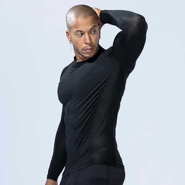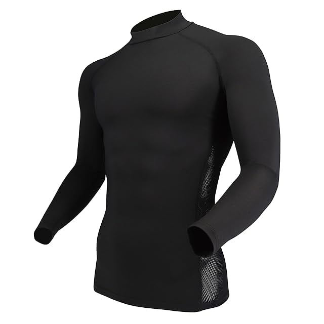 商品名:おたふく手袋 夏用インナー 長袖 ハイネック [接触冷感 吸汗速乾 消臭 コンプレッション UVカット メンズ] JW-625 ブラック L 【3枚セット】