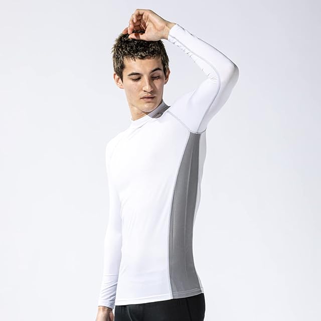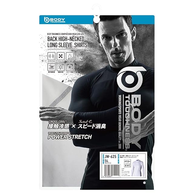 商品名:[おたふく手袋] 夏用インナー 長袖 ハイネック [接触冷感 吸汗速乾 消臭 コンプレッション UVカット メンズ] JW-625 ホワイト LL 【3枚セット】