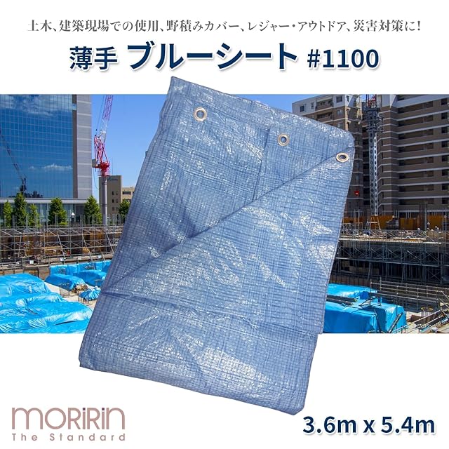 商品名:モリリン ブルーシート レジャーシート #1100 薄手 3.6m×5.4m ハトメ付き 軽量タイプ 1枚入
