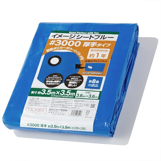 商品名:モリリン ブルーシート レジャーシート イメージシートブルー #3000 厚手 3.6×3.6m ポリカーボネートハトメ 使用目安約1年 1枚入