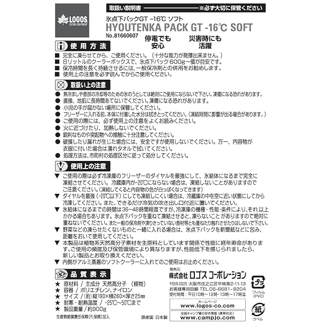 商品名:ロゴス(LOGOS) 保冷剤 氷点下パック GTマイナス16度 ソフト 900 アウトドア・お弁当に