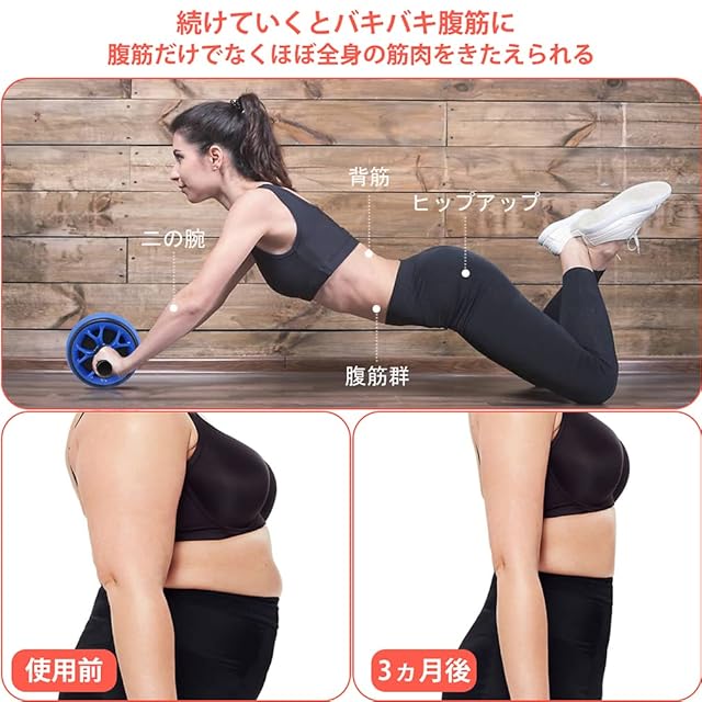 スタイル維持とボディメイク:健康と美しさは誰かでも追求されているものだと思う。腹部に脂肪が堆積されて、健康にもよくないしスタイルも変わるし、リーズナブルな効果のある腹筋ローラーでトレーニングし続ければスリムスタイルを得られます。正しいトレーニングを行ってこれを数ヶ月も続けたならあなたの腹筋は間違いなくバキバキになっているはずです。初心者でも腹筋を割ることは可能です。男性も女性もスタイル維持とボディメイクにお勧めする。