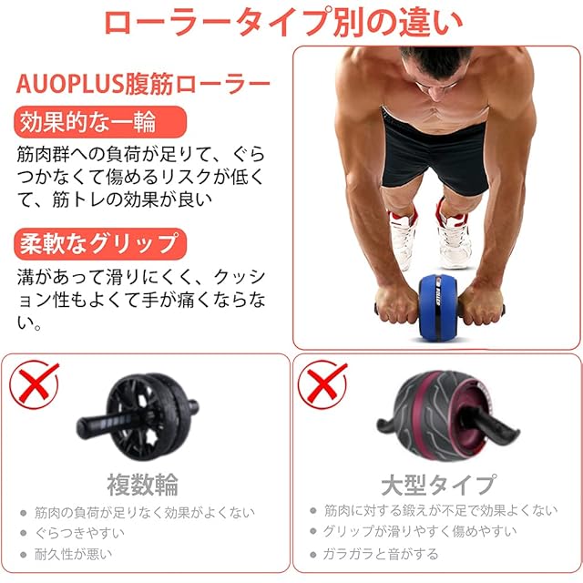 商品名:AUOPLUS 腹筋ローラー 膝マット付き アブホイール 腹筋 トレーニング器具 筋トレグッズ エクササイズローラー 体幹 ストレッチ ダイエット器具 アブローラー (ブルー/ブラック)