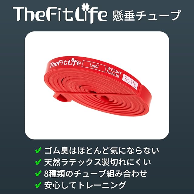 商品名:TheFitLife トレーニングチューブ 筋トレチューブ 懸垂チューブ (赤)