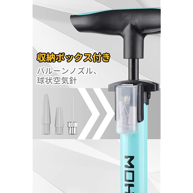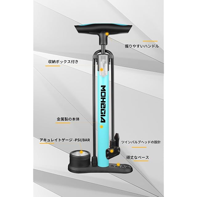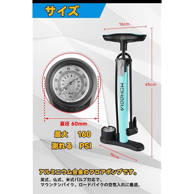 商品名:MOHEGIA 自転車 空気入れ: フロアポンプ - 仏式 米式 英式バルブ対応 - 160PSI スケール圧力計 - ブルー