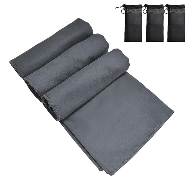 速乾タオル 髪 マイクロファイバータオル バスタオル スポーツタオル ジムタオル スイミングタオル セイムタオル 旅行タオル 超吸水 柔らかい 耐久性 速乾 軽量 収納袋付き 80x40cm (ダークグレー3枚) | Trend Design BASE店