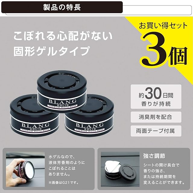 商品名:カーメイト(CARMATE) 車用 消臭芳香剤 ブラング ソリッド 置き型 詰替用 プレミアムホワイトムスク 60g×3個 G1831T