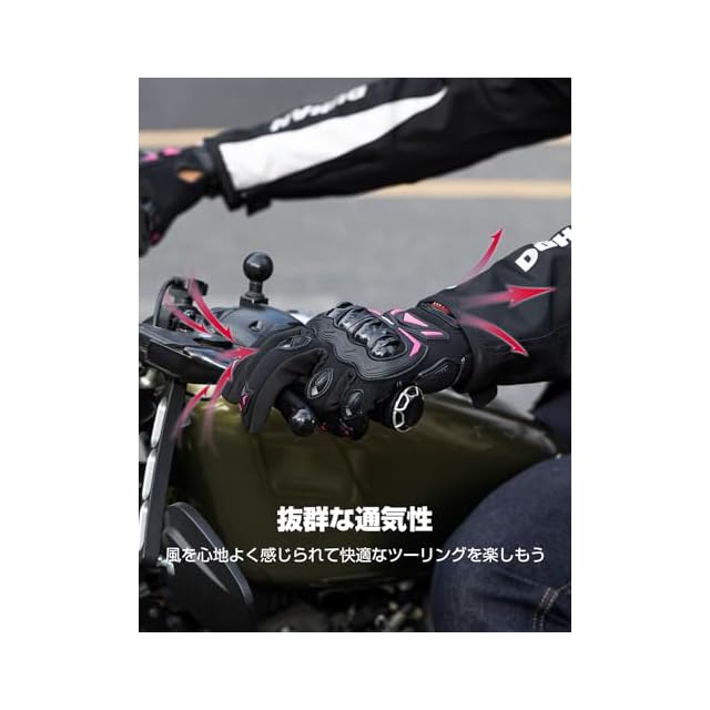 商品名:KEMIMOTO バイク グローブ 夏 メッシュ 通気 バイク用グローブ 軽量 スマホ対応 夏用グローブ オートバイ手袋 滑り止め 耐衝撃 プロテクト 春夏秋 ピンク M 402