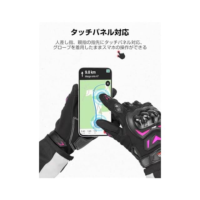 【スマホ反応はバッチリ】人差し指、親指の指先にタッチパネル対応の特殊な素材を採用され、グローブを着用したままスマホやタブレットなどの操作ができます。ツーリングの時、グローブをして、ナビや撮影に高い利便性があり、わざわざ脱着する必要はございません。