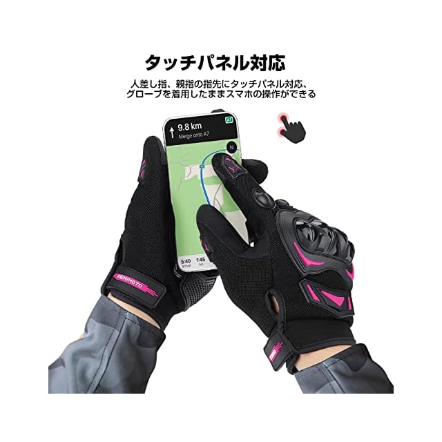 【スマホ反応はバッチリ】人差し指、親指の指先にタッチパネル対応の特殊な素材を採用され、グローブを着用したままスマホやタブレットなどの操作ができます。ツーリングの時、グローブをして、ナビや撮影に高い利便性があり、わざわざ脱着する必要はございません。