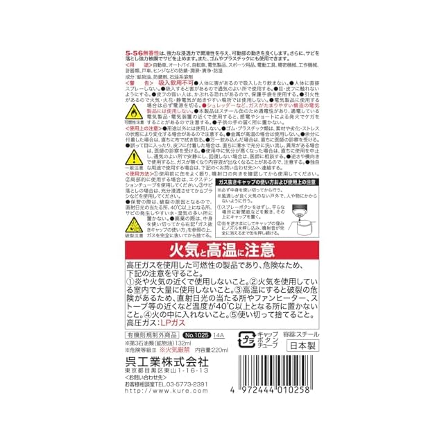 KURE(呉工業) 5-56 無香性 220ml 防錆・潤滑剤 1025