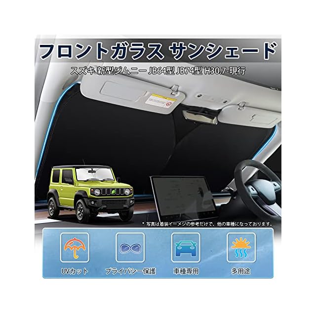 LIMSTYLE スズキ ジムニー JB64 JB74 JC74 フロントガラス用 サンシェード ジムニーシエラ ノマド マルチサンシェード JIMNY SIERRA NOMADE 遮光 断熱 シェード カーテン H30.7~現行 日除け UVカット 車中泊 しなやか スポーティ タイプ ドット柄 収納袋付 アクセサリー 内装パーツ 車種専用 取付簡単 メーカー直営 | Trend Design BASE店