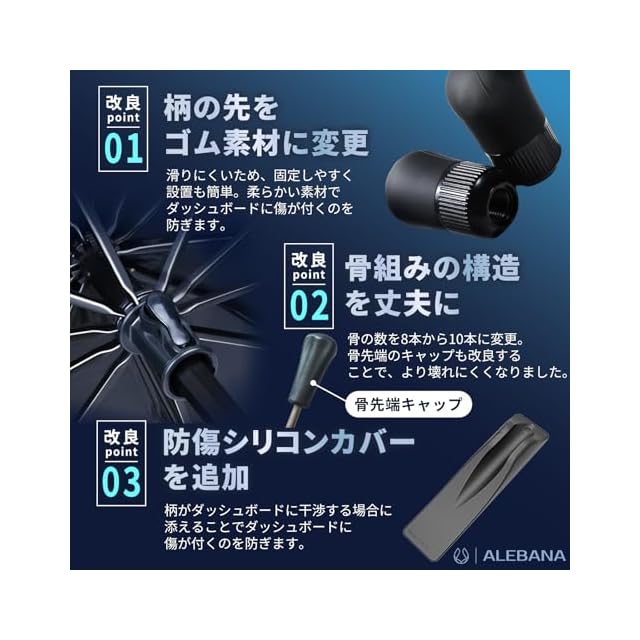 【スリット入傘式サンシェード】 傘式サンシェード は 車 の フロント 部分に傘をさすようにサッと簡単に設置できる 車用 の 日除け 便利グッズ です。 【タントにぴったりのサイズ】 汎用タイプが多い 傘型 サンシェード 。愛車にフィットせず十分な 日除け ができないお悩みにお応えし、 4代目 タント la650s la660s にぴったりのサイズをご用意しました。 【ドラレコの車外録画が可能】 傘 の上部にスリットが入っており、ドラレコを避けて設置ができるため、車外録画機能はそのまま、防犯性も維持できます。 【曲がる柄で愛車をガード】 柄が曲がるため、モニターを傷つけることなく設置できます。また、フロント 側に柄を曲げることでより固定した設置が可能になります。 【アップデートされた遮光性】 6層のコーティングにより遮光性がUP。 車内 の気温上昇を抑制し、暑い夏でもすぐに発進できる快適な 車内 を実現します。