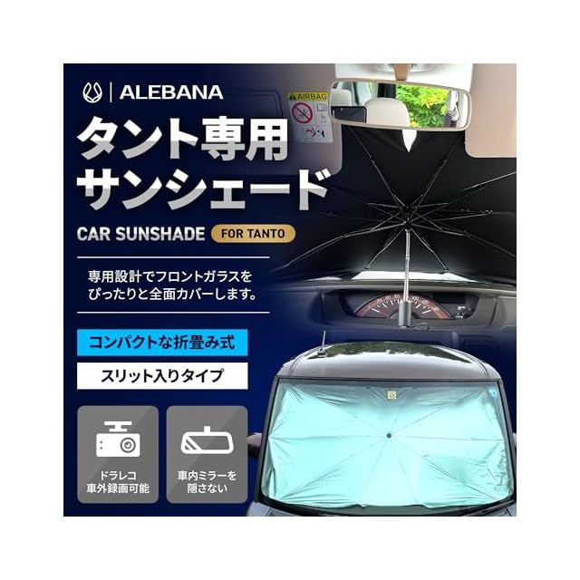 商品名:ALEBANA タント サンシェード 【ドラレコ車外録画対応】【2025年版】 la650s la660s 車 フロント 車用サンシェード 日除け 傘 アクセサリー カー用品 便利グッズ 車内 (タント LA650S/ LA660S)