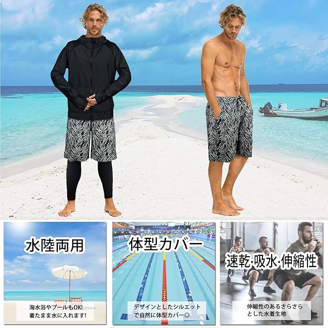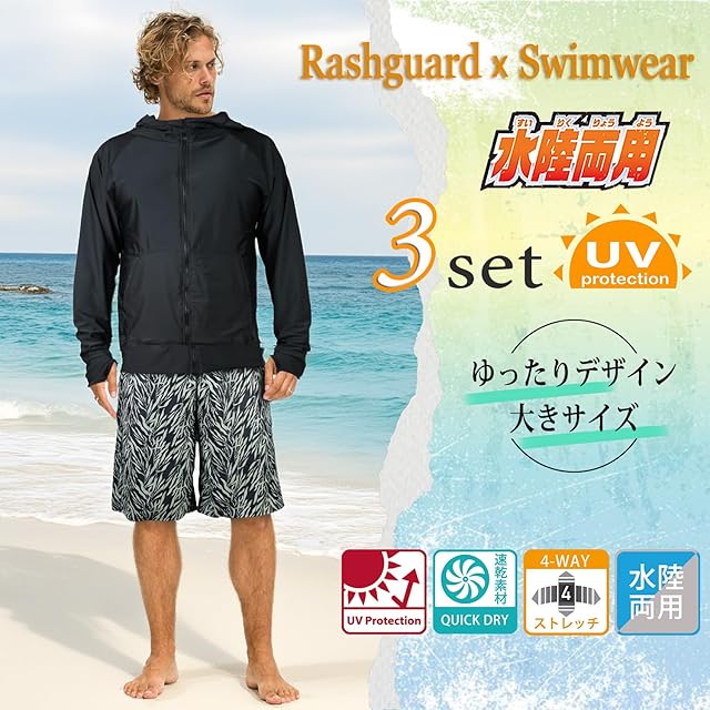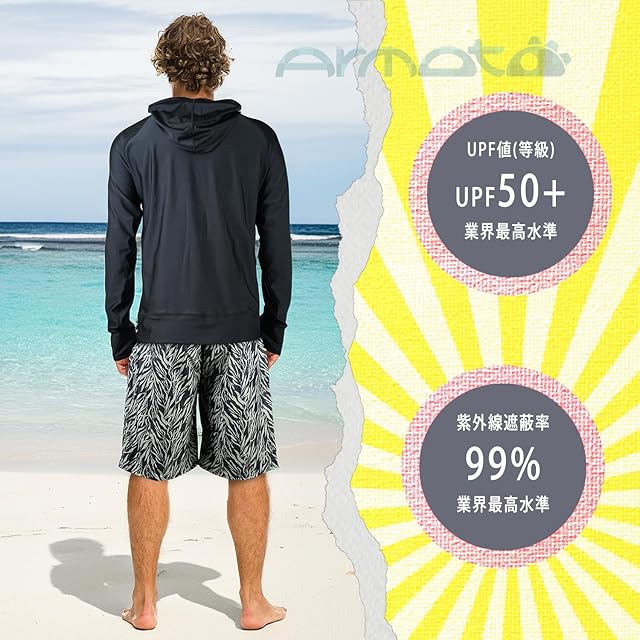 商品名:【ARMOTO】 ラッシュガード メンズ 水着 長袖 パーカー レギンス サーフパンツ フィットネス [UVカット UPF68+・吸汗速乾] 水泳 水陸両用 大きいサイズ