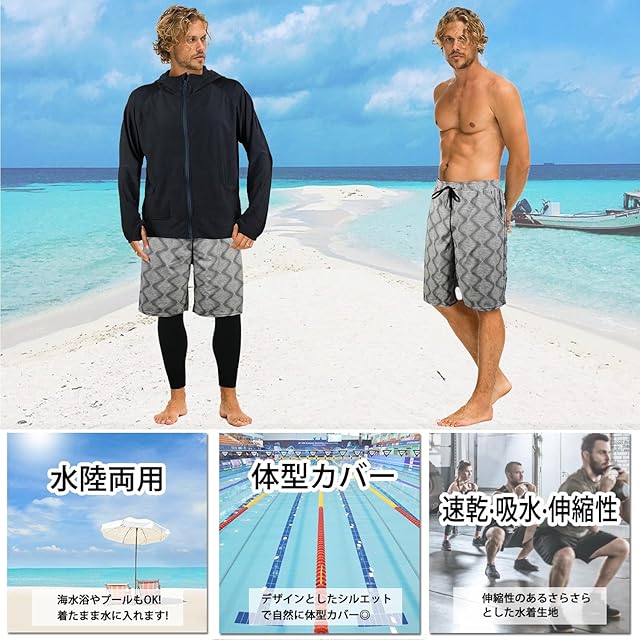商品名:【ARMOTO】 ラッシュガード メンズ 水着 長袖 パーカー レギンス サーフパンツ フィットネス [UVカット UPF50+・吸汗速乾] 水泳 水陸両用 大きいサイズ