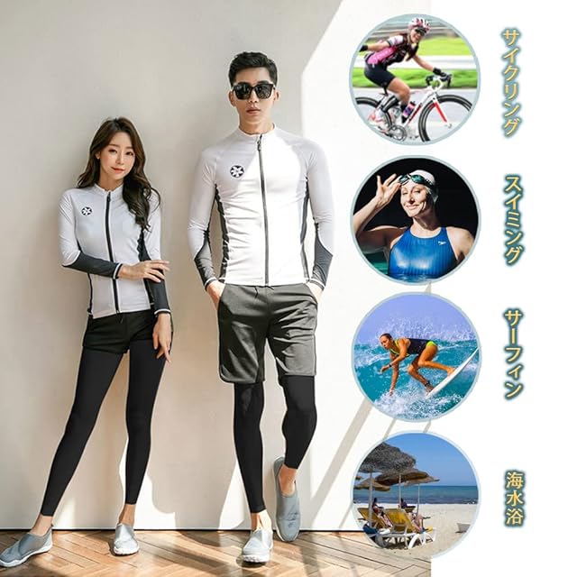 【適用場合&水陸両用】海辺のみならず、軽量なのに伸縮性抜群の生地でとても動きやすく、吸汗・速乾素材なので運動に最適です!夏場のウォータースポーツや野外活動の際、海、ジム、プールやビーチ、、温泉と幅広いジャンルで使える便利なスポーツ・アイテムです。通勤、通学、ランニング、ヨガなど、スポーツウェアとしてもご利用いただけます。水に濡れても快適に活動できる生地を使用。前開き対応のラッシュガードは着脱も簡単です、着替えに便利。