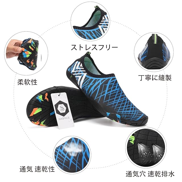 商品名:Sixspace マリンシューズ ウォーターシューズ シュノーケリング アクアシューズ ビーチサンダル 男女兼用 水陸両用 青 23.5cm