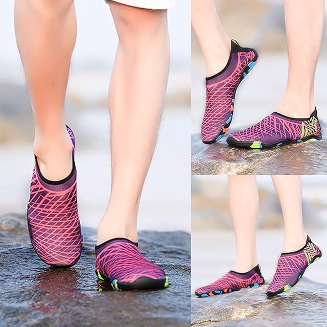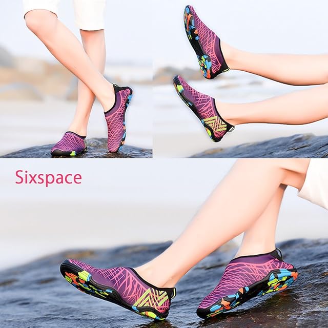 Sixspace マリンシューズ ウォーターシューズ シュノーケリング アクアシューズ ビーチサンダル 男女兼用 水陸両用 ローズ 24cm
