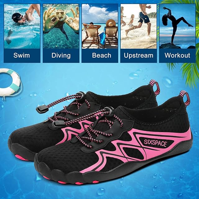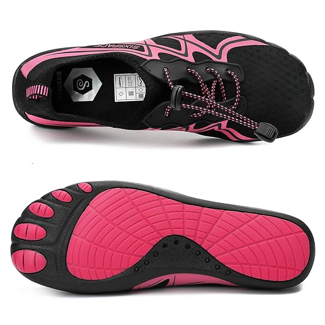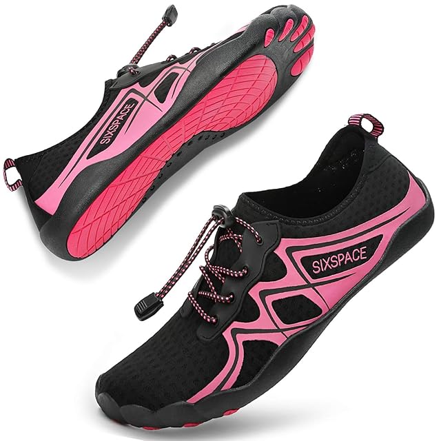 [SIXSPACE] マリンシューズ ウォーターシューズ アクアシューズ ビーチシューズ スニーカー ヨガ シュノーケリング 水陸両用 軽量 通気 ローズ 24.5cm