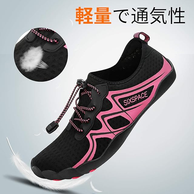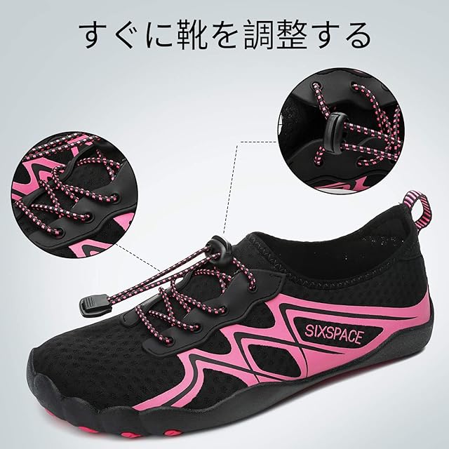 商品名:[SIXSPACE] マリンシューズ ウォーターシューズ アクアシューズ ビーチシューズ スニーカー ヨガ シュノーケリング 水陸両用 軽量 通気 ローズ 24.5cm
