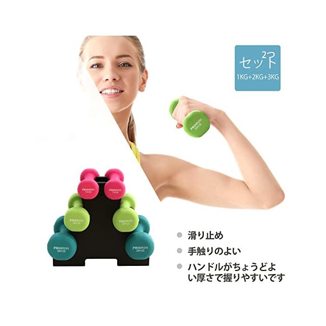 PROIRON ダンベルセット1kg 2kg 3kg 「2個セット」ダンベルラック付 エクササイズ ネオプレンゴムコーティング 筋力トレーニング 筋トレ シェイプアップ 鉄アレイ 鉄アレー | Trend Design BASE店