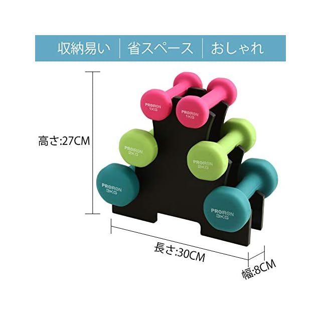 商品名:PROIRON ダンベルセット1kg 2kg 3kg 「2個セット」ダンベルラック付 エクササイズ ネオプレンゴムコーティング 筋力トレーニング 筋トレ シェイプアップ 鉄アレイ 鉄アレー