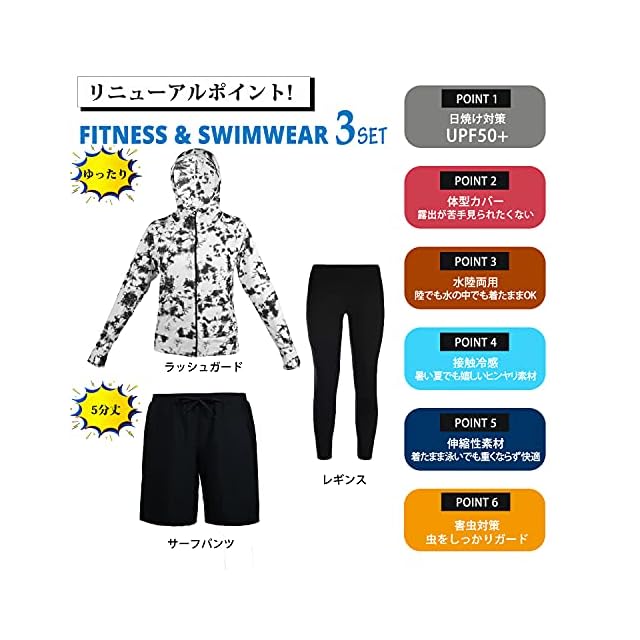 【セット内容】ラッシュガード、レギンス サーフパンツ。
